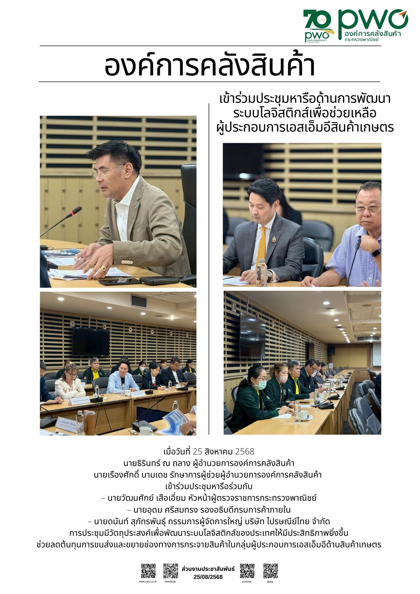 ผู้อำนวยการองค์การคลังสินค้าเข้าร่วมประชุมหารือด้านการพัฒนาระบบโลจิสติกส์เพื่อช่วยเหลือผู้ประกอบการเอสเอ็มอีสินค้าเกษตร